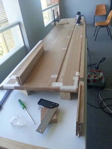 Another point was the need to route many pieces to more easily achieve things such as the 8mm-rounded top, legs and rails. Using a router is always a challenge. There’s consistently a need to test (the old adage measure twice cut once) – and plenty of offcuts went through it. The noise wouldn’t be a problem back in a suburban house, but can be an issue in high-density urban living, generally restricting use of power tools to working hours. Fencing is a requirement too – indeed I’d often spend twice as long fencing as routing. However routing done right is almost always faster than chiselling.