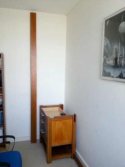 Further 350mm is taken by a display for some of the trinkets I’ve acquired on my travels to places like the Great Barrier Reef, Coober Pedy, Lightning Ridge and Cradle Mountain. Hence we come to the first decision – the desk was to be about 2.8m long. Given that, I did some searching and there’s really next to nothing out there that comes close, though the 2.4m kitchen benchtop idea is interesting. I had a choice: